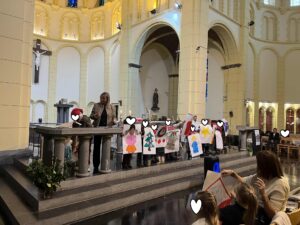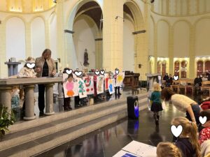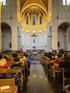 Le vendredi 19 décembre, tous les élèves de l’ école ( M2 à P6) se sont rendus à l’ église pour la célébration de Noël. Celle-ci fut préparée en classe tout au long de l’ Avent.