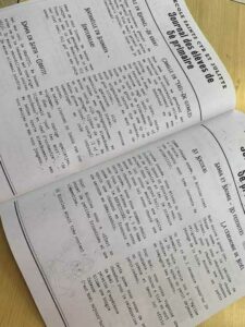 - Dans la salle, nous retrouvons, à notre place du matin, notre texte que chaque greffier a mis au net et photocopié pour chaque enfant.