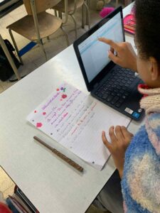 - Dans la salle, nous retrouvons, à notre place du matin, notre texte que chaque greffier a mis au net et photocopié pour chaque enfant.