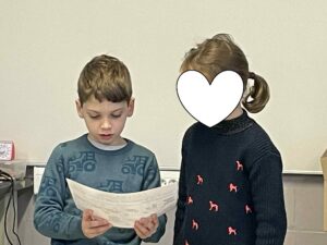 En P2, ce sont les enfants qui lisent eux-mêmes les histoires à la classe.