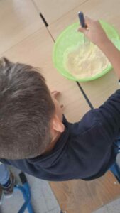 Après être passés par les phases de lecture, puis d’ écriture, quoi de mieux que de réaliser les crêpes pour ensuite les déguster …