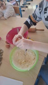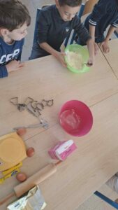 Cette année, en P2, les enfants ont découvert la recette des crêpes : lecture, découverte des ingrédients et des ustensiles, des différentes étapes de la réalisation.
