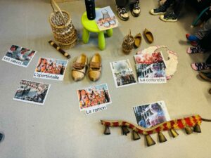 Les élèves de M2/M3 découvrent les traditions et le costume du carnaval de Binche. Bel enrichissement en vocabulaire concernant une de nos belles traditions belges…