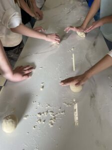 En P3, les élèves réalisent des bricolages pour décorer les tables lors de notre souper sur le thème savoyard.
